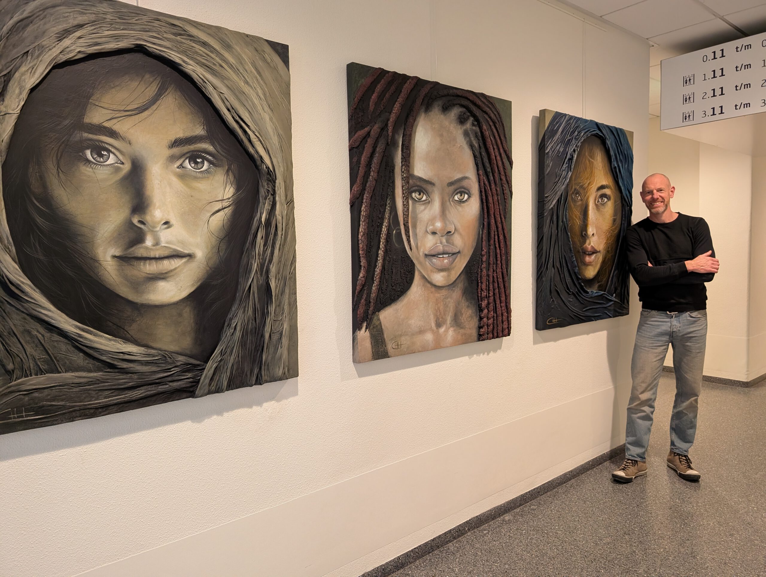 Mijn naam is Chris ter Harmsel en ik vind het gaaf om mooie, realistische werken te maken. Indrukwekkende dieren en de natuurlijke schoonheid van mensen inspireren me enorm. Graag neem ik je even mee op reis naar de wereld van mijn manier van schilderen. Met penselen, kwasten, plamuurmessen of gewoon mijn vingers maak ik mijn werken.